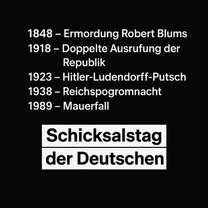 Der 9. November – Schicksalstag der Deutschen Kaum ein Datum steht so sehr für die Gegensätze unserer Geschichte wie der 9. November. Er zeigt, wie nah Licht und Schatten in Deutschland beieinanderliegen – und erinnert uns daran, dass Freiheit und Demokratie keine Selbstverständlichkeit sind. Am 9. November 1938 erreichte der Antisemitismus in der Reichspogromnacht eine schreckliche Eskalation. Sie brachte unermessliches Leid über die jüdische Bevölkerung und kündigte die grausamsten Verbrechen des NS-Regimes an. Dieser Tag mahnt uns, Antisemitismus, Hass und Ausgrenzung niemals wieder zu dulden. Auch die Verletzlichkeit der Demokratie zeigt sich an diesem Datum: 1848 wurde der Revolutionär Robert Blum ermordet – das Ende der ersten deutschen Freiheitsbewegung. 1918 wurde die Republik gleich zweimal ausgerufen – der Beginn der ersten deutschen Demokratie und das Ende der Monarchie. Doch schon 1923 versuchten Hitler und Ludendorff, mit einem Putsch die junge Demokratie zu stürzen. 1989 schließlich wurde der 9. November zum Symbol der Freiheit. Der Fall der Mauer steht für friedlichen Widerstand, Wiedervereinigung und einen neuen Aufbruch in eine demokratische Zukunft. Der 9. November vereint Tragödie und Hoffnung, Unterdrückung und Befreiung. Er ruft uns dazu auf, das Erbe unserer Geschichte zu bewahren und uns entschlossen für Demokratie, Frieden und Zusammenhalt einzusetzen. #9November #Schicksalstag #Erinnerung #Demokratie #Frieden